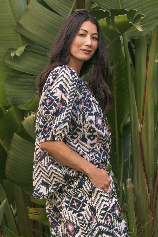 Sold outTribal Print Shirred Top